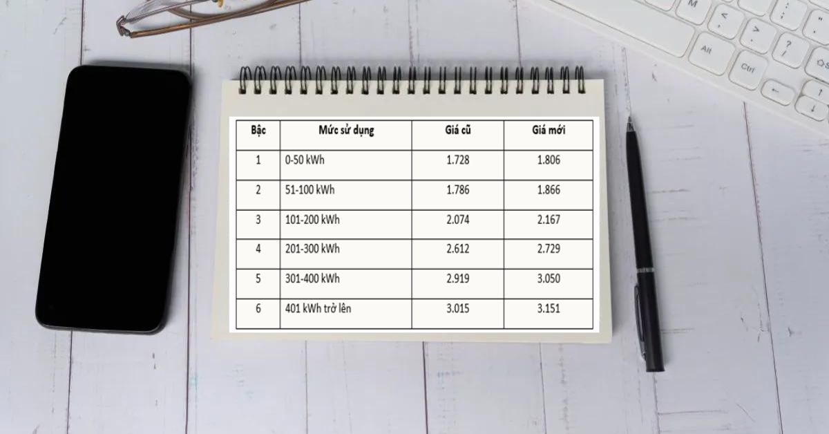 Theo quyết định 1062/QĐ-BCT của Bộ Công Thương ban hành ngày 04/05/2023, điện sinh hoạt sẽ có 6 bậc tương ứng với 6 mức giá khác nhau. Vì vậy, bạn dùng càng nhiều thì giá điện sẽ càng tăng. Theo đó, mức giá 1kg điện ở 6 bậc sẽ giao động từ 1.806 đồng - 3.151 đồng.