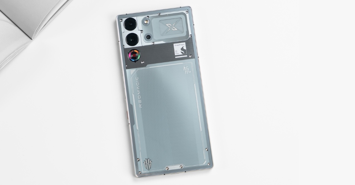 Điểm nhấn đặc biệt của Red Magic 10S Pro+ nằm ở thiết kế mặt lưng phẳng hoàn toàn, một đặc trưng hiếm có trong phân khúc flagship hiện nay. Mặt lưng trong suốt, đặc biệt ở phiên bản “Deuterium Front Transparent Silver Wing”, cho phép người dùng chiêm ngưỡng các linh kiện bên trong như chip, pin và hệ thống vít kim loại. Thiết kế này không chỉ mang tính thẩm mỹ cao mà còn tạo cảm giác công nghệ tiên tiến, đậm chất khoa học viễn tưởng.