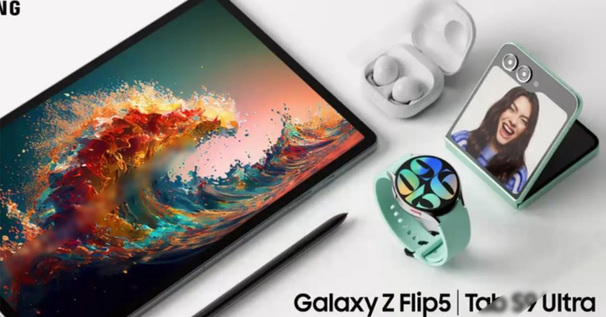 Mới đây, những hình ảnh của loạt tân binh nhà Samsung như Galaxy Z Fold 5, Galaxy Z Flip 5, dòng Galaxy Watch 6 cũng như Galaxy Tab S9 bị rò rỉ. Theo đó người dùng thấy được ngôn ngữ thiết kế chính thức cũng như các tuỳ chọn màu sắc của các tân binh. Được biết, công ty sẽ sẽ giới thiệu những thiết bị này tại sự kiện Galaxy Unpacked vào tháng tới.