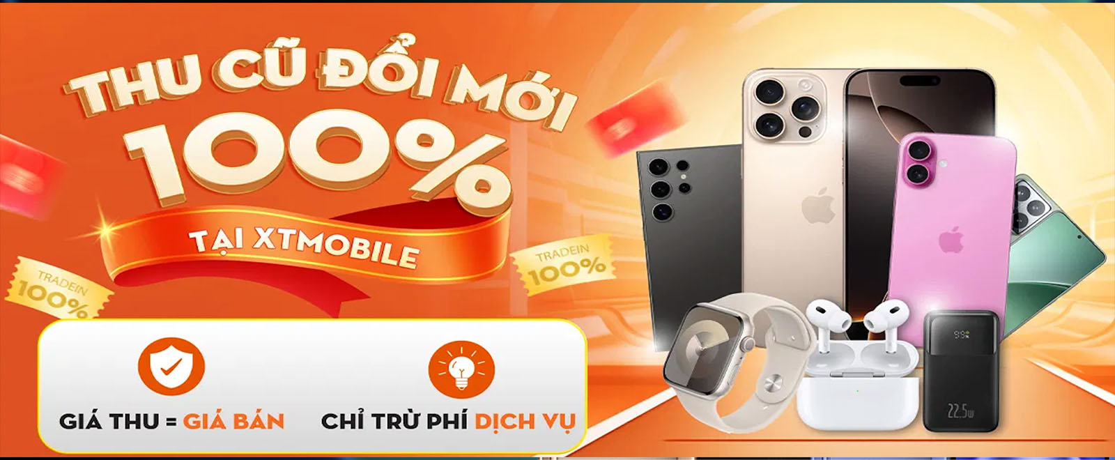 Bên cạnh những chương trình khuyến mãi cùng quà tặng kèm độc quyền, XTmobile còn hỗ trợ thu cũ đổi mới khi bạn mua iPhone 14 Series. Với giá thu điện thoại cũ lên đến 90% giá trị máy, bạn tiết kiệm được một khoản tiền không nhỏ khi mua tại XTmobile rồi đó!