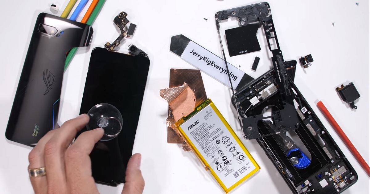 So với các điện thoại khác, Asus ROG Phone 2 thực sự khó tháo rời hơn vì tấm kính có hình dạng đặc biệt được ngăn cách bởi lỗ thông hơi bằng kim loại. Khám phá thực tế chỉ ra rằng các lỗ thông hơi này rỗng và không được kết nối với bất kỳ thành phần nào trên bo mạch chủ.