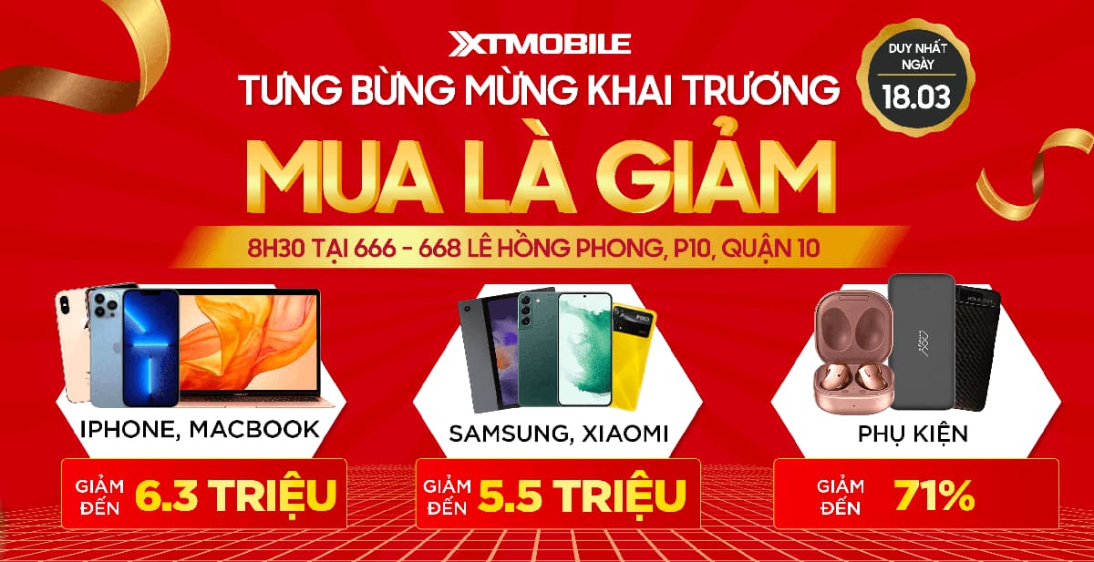 Mừng khai trương XTmobile 666 - 668 Lê Hồng Phong: Đồng loạt giảm đến 6,3 triệu
